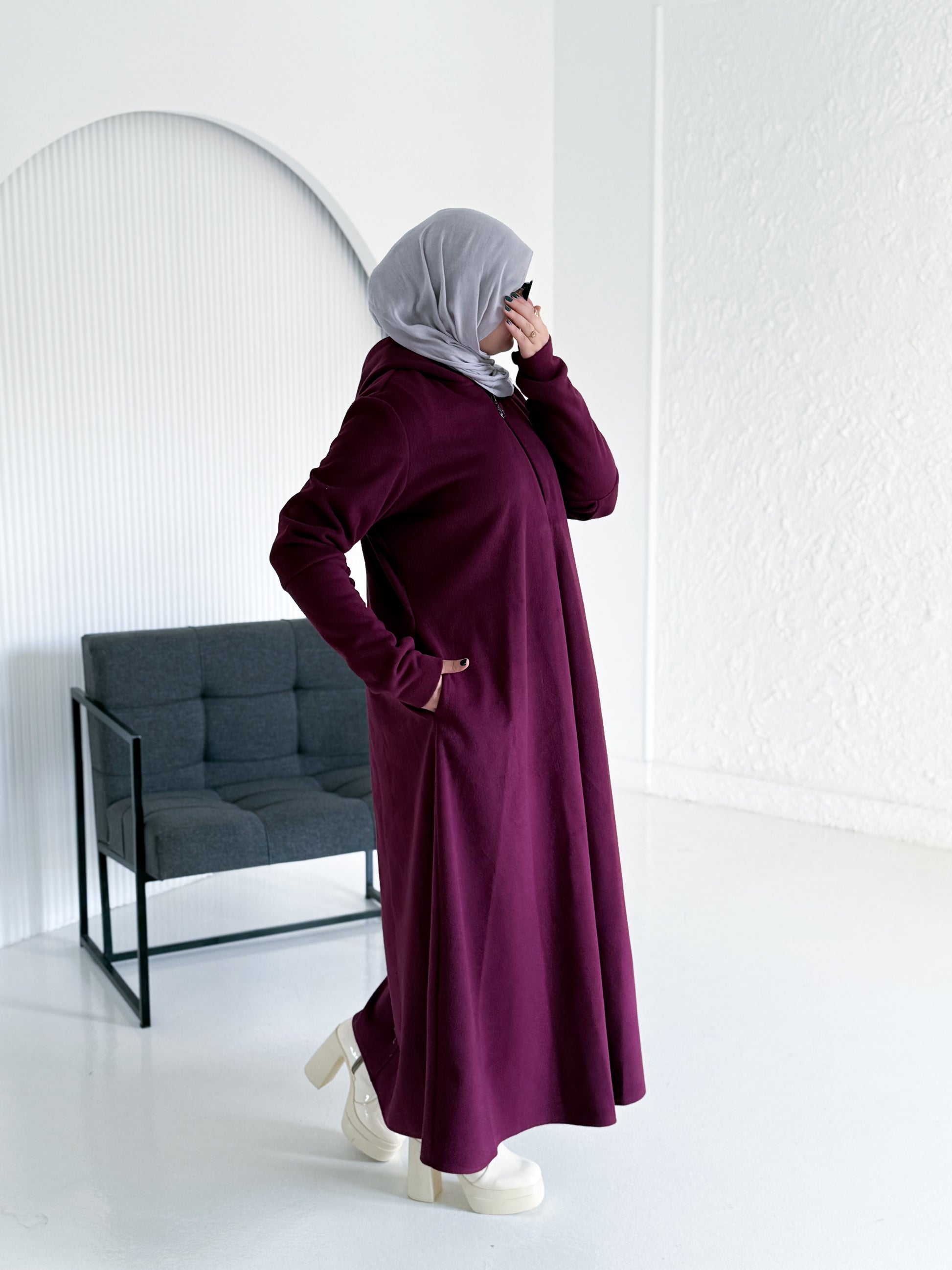 مزود بسوستة أمامية من الصدر لسهولة الارتداء ولمسة عصرية، وكابيشو عملي يضيف إحساسًا بالدفء والأناقة.