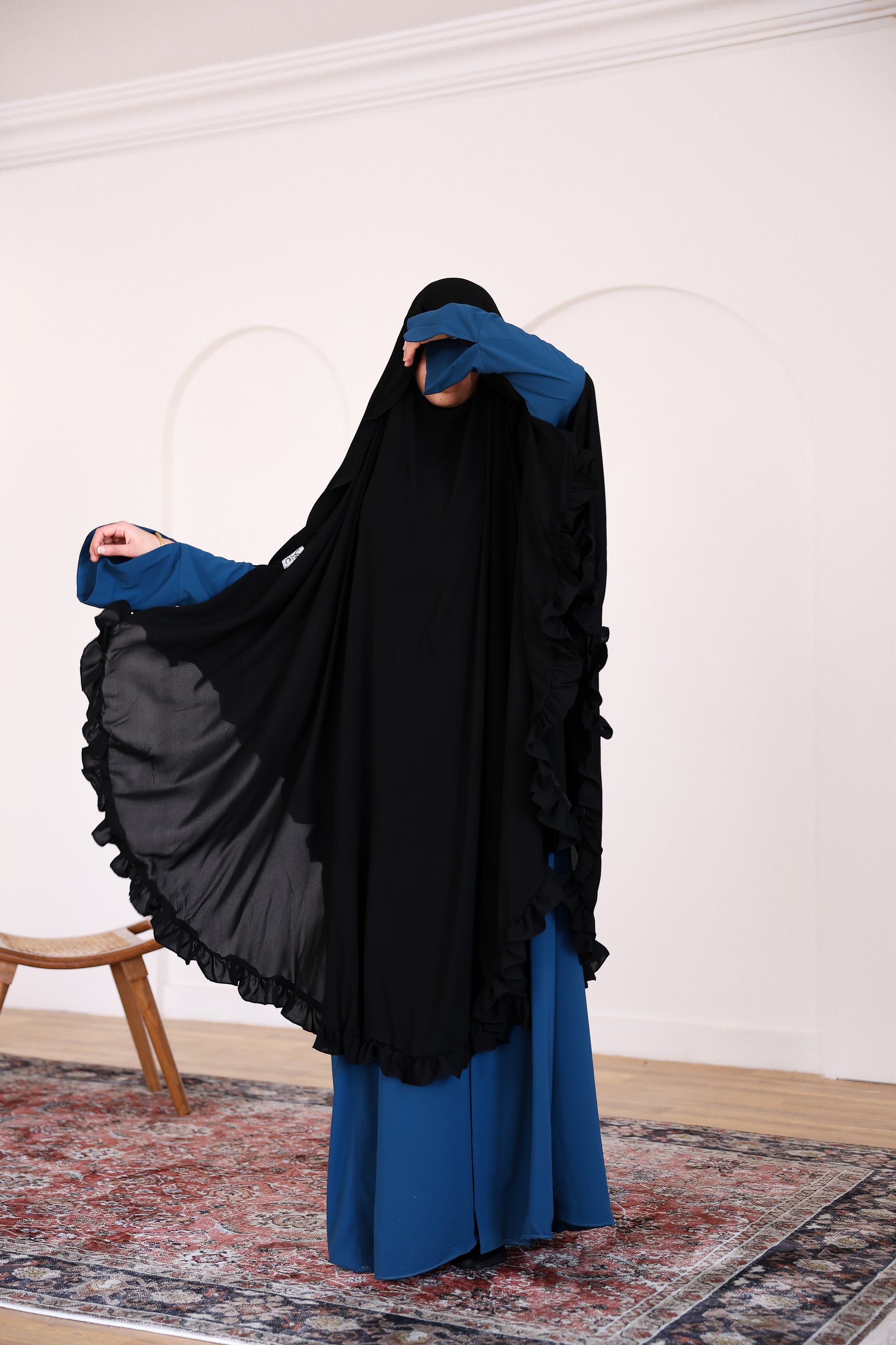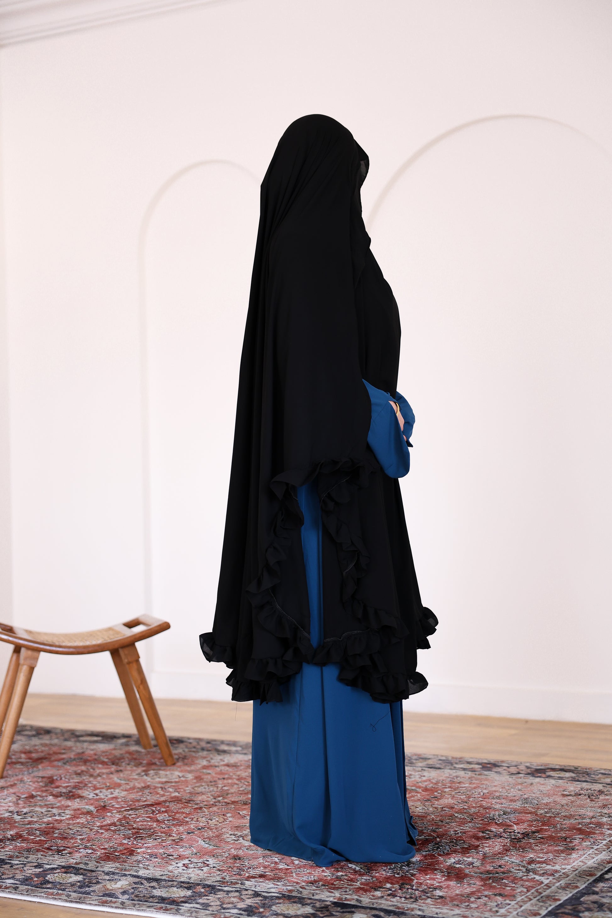 وشاح أنيق بتصميم مميز بكرانيش مع فتحات مريحة للكم، يمنحك إطلالة محتشمة ومرتبة بسهولة فوق مختلف القطع.